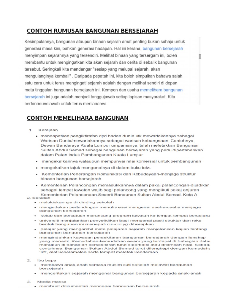 Contoh Karangan Usaha Usaha Memelihara Dan Memullihara Bangunan Bersejarah Pdf